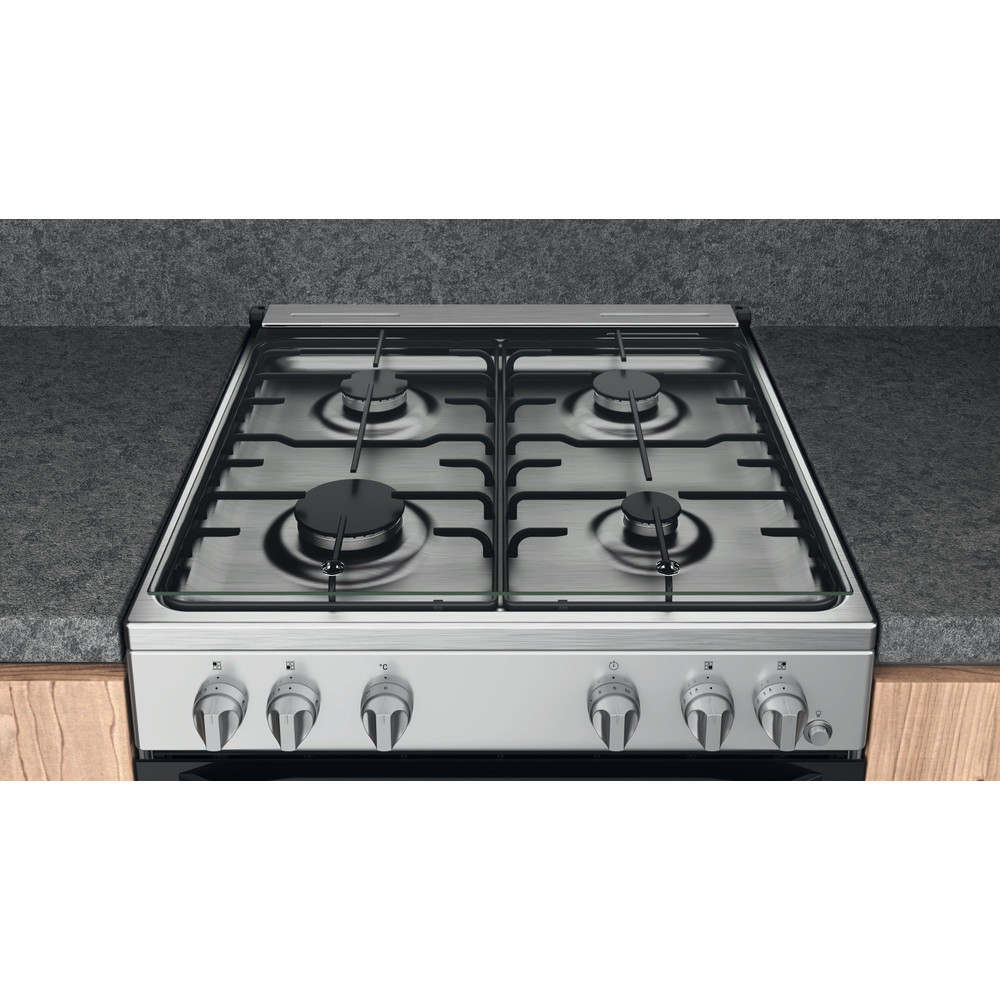 Acest aragaz neincorporabil Hotpoint 60x60 are următoarele caracteristici: 4 arzătoare cu gaz. Culoare inox. Alimentare cu gaz. Lățimea de 60 cm.
