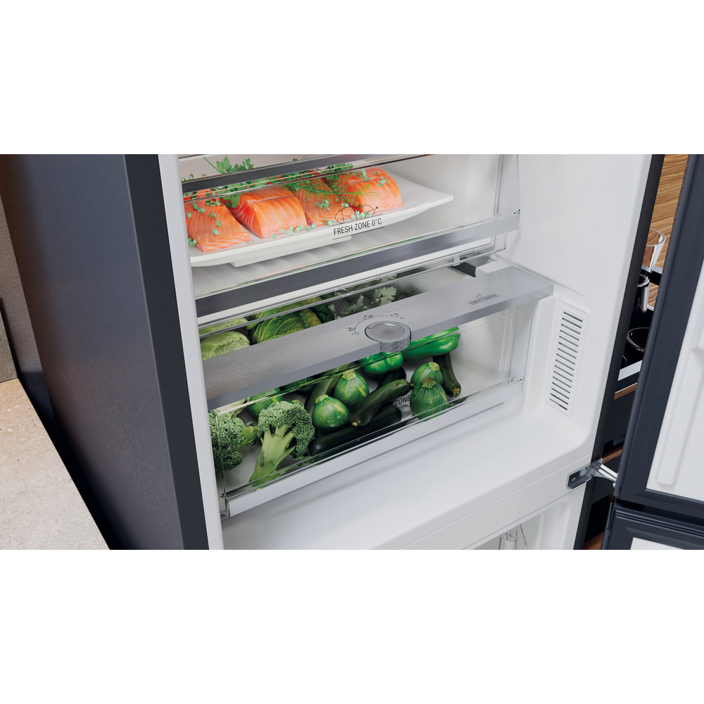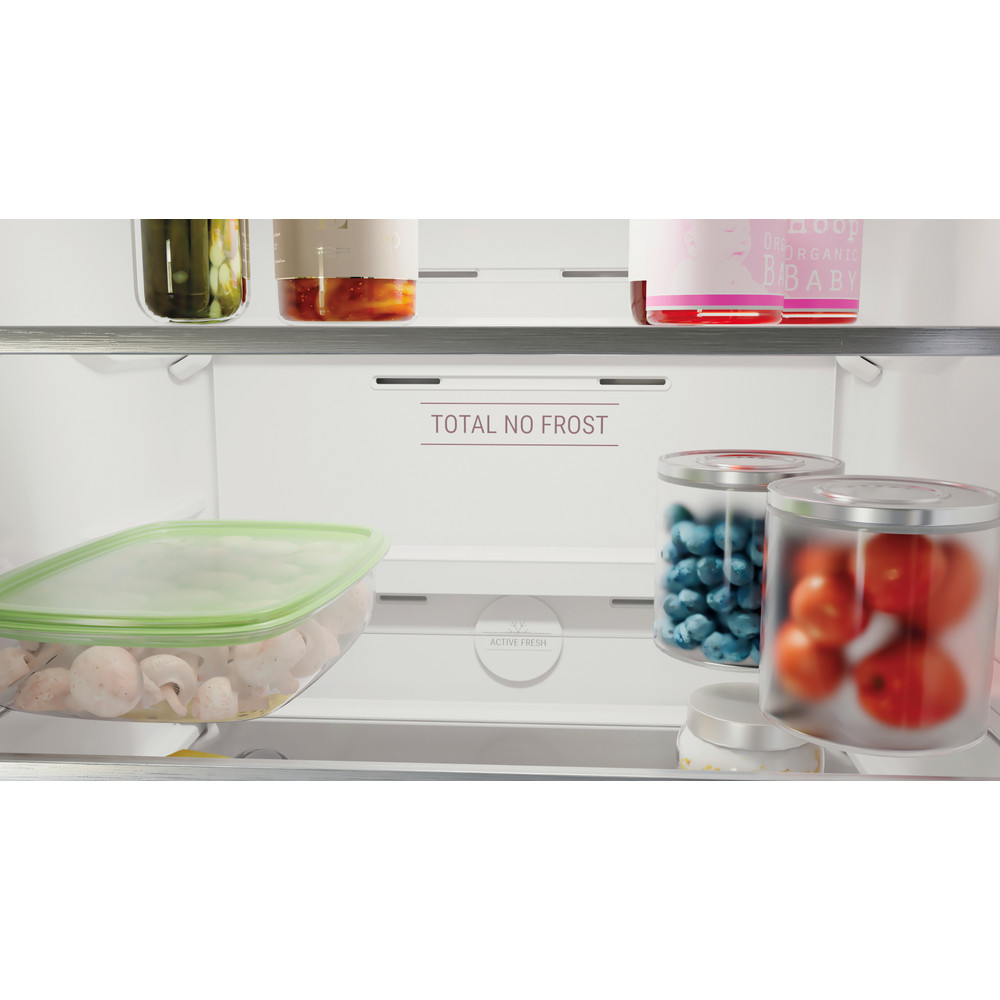 Această combină frigorifică Hotpoint are: un aparat înalt care să corespundă nevoilor familiei dvs. Nu există îngheț, tehnologie fără îngheț, care împiedică în mod eficient acumularea de gheață în aparat, prin reducerea nivelului de umiditate. Rafturi din sticlă, oferind robustețe. Raft convenabil pentru sticle pentru depozitarea sigură a acestora