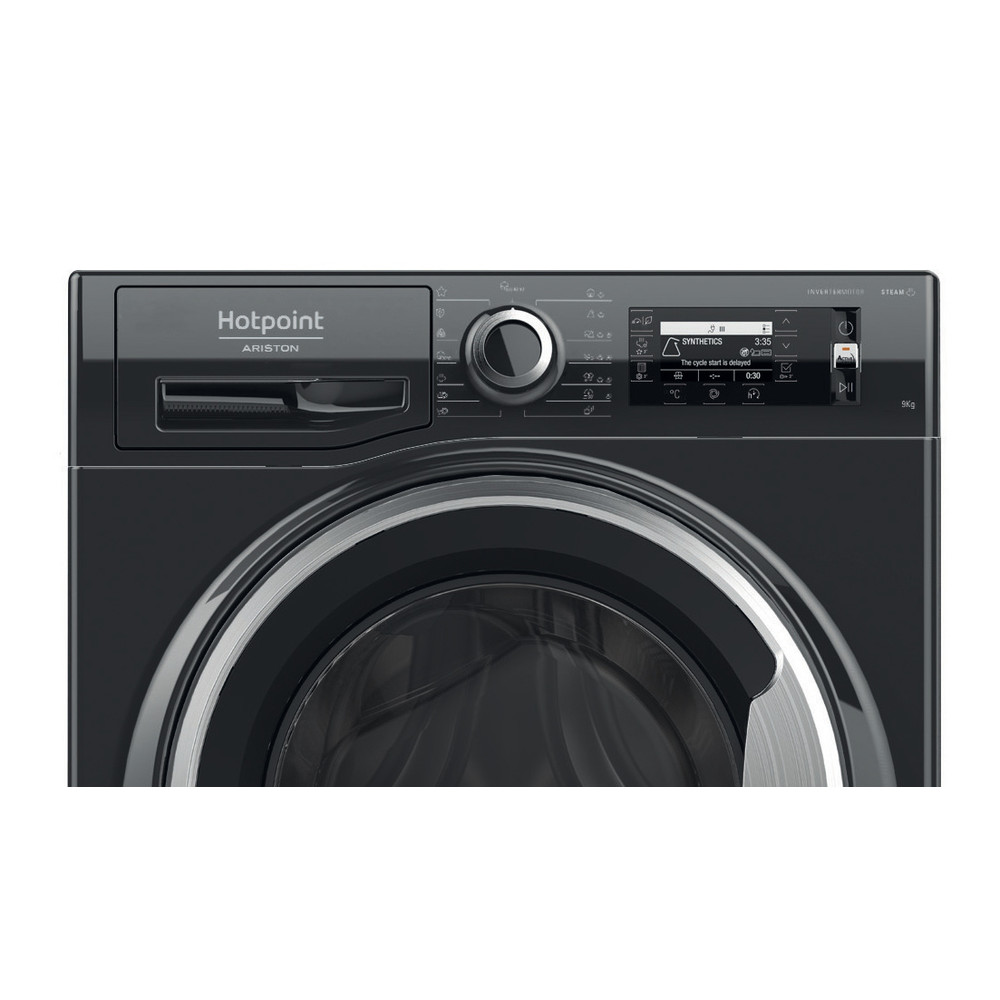 Mașina de spălat cu încărcare frontală neincorporabilă Hotpoint are următoarele caracteristici o capacitate extra-spațioasă, de 9,0 kg. Rating de energie B. O viteză de centrifugare rapidă, eficientă din punct de vedere al resurselor, de 1400 rotații pe minut. Culoare neagră.