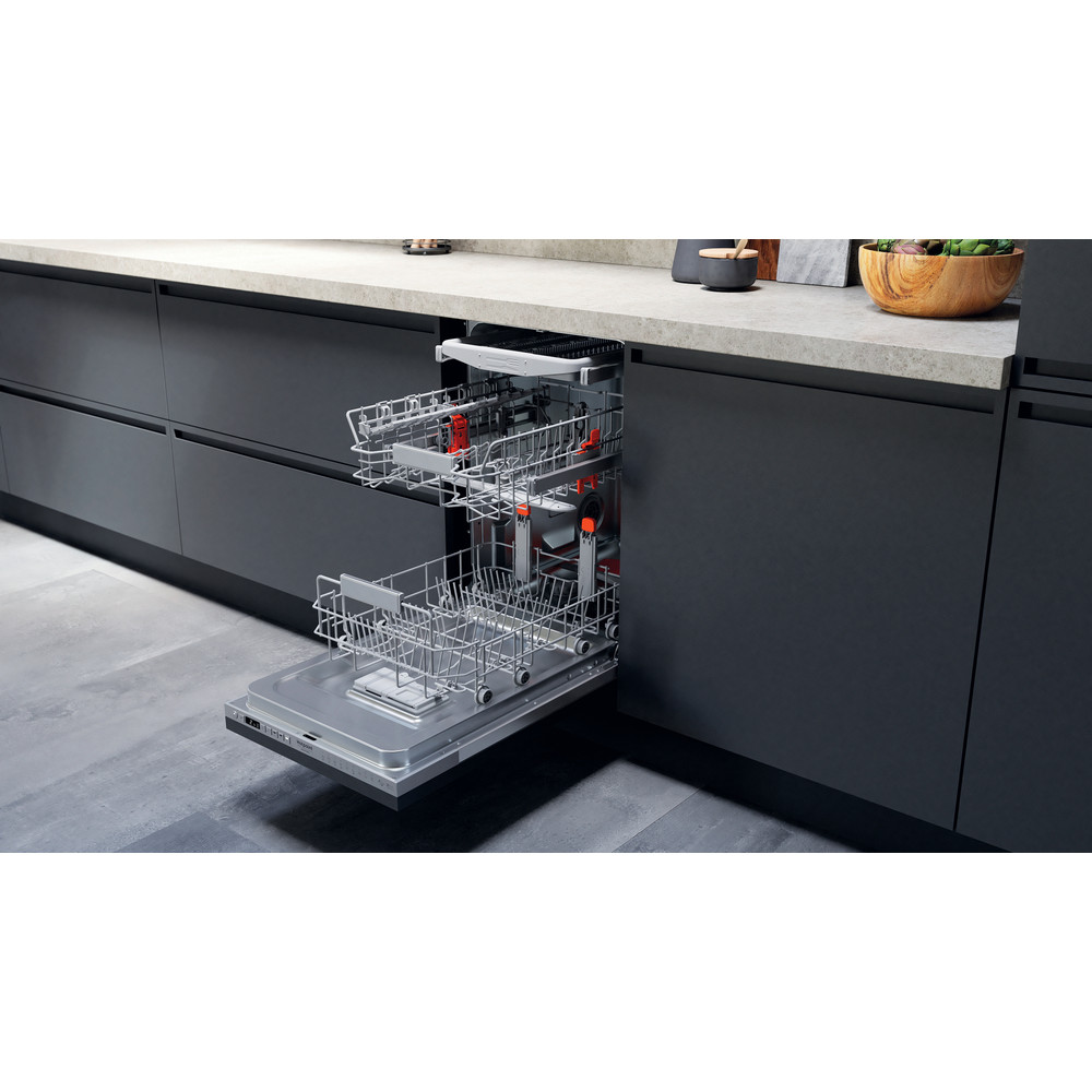 Această mașină de spălat vase incorporabilă Hotpoint are următoarele caracteristici: dimensiunea îngustă combinată cu un număr remarcabil de seturi, pentru a vă bucura de spațiul de care aveți nevoie, atât în interiorul cât și în exteriorul mașinii dvs. de spălat vase. Reducere excepțională a consumului de apă și design compact și eficient din punct de vedere al spațiului. Culoare argintie. Tehnologie inovatoare care asigură performanțe extra-silențioase pentru un aparat foarte silențios. Cronometru digital convenabil, care vă informează când ciclul de spălare este complet.